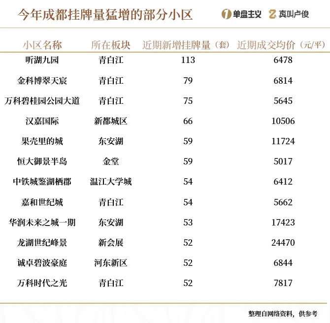 据当地中介解释,成都主城区目前挂牌还较为稳定