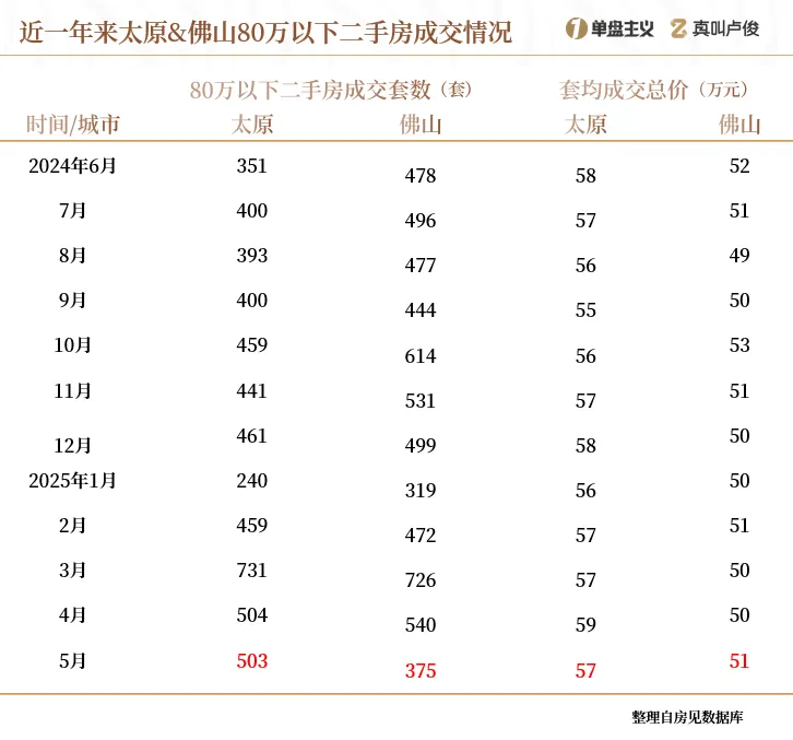 太原和佛山的套均总价已经低至50万出头,可谓是卖出了白菜价