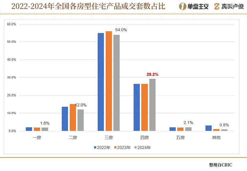 据CRIC统计,去年四房和五房产品的成交占比持续增长