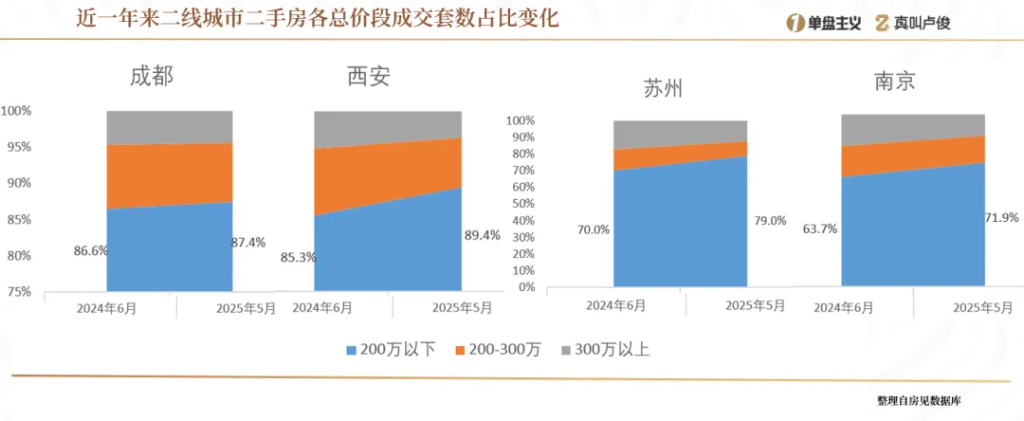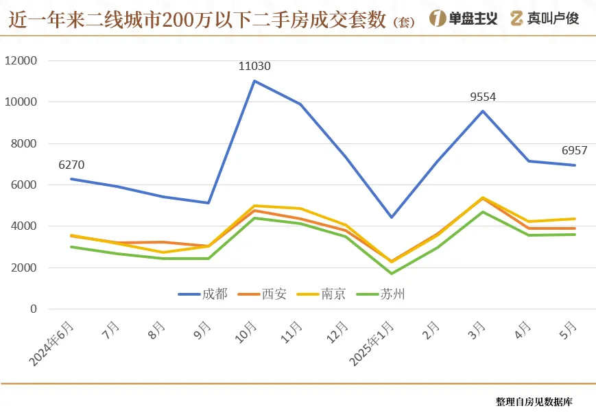 比如成都、西安、苏州还有南京,基本上200万以下的预算,就只能考虑二手房了
