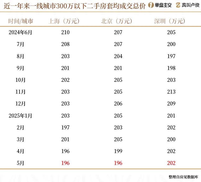 上海从210万降到了196万,平均每套缩水了14万,北京和深圳也各降了11万和3万